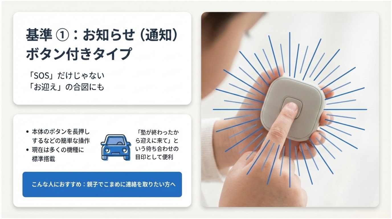 万が一のSOS発信としてはもちろん、「塾が終わったから迎えに来て」という日常の合図や、待ち合わせの目印としても便利に活用できます。